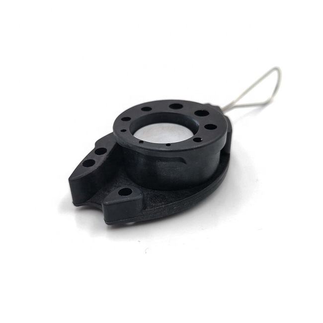 turning and suspension of drop cable routes. It is made of UV stable material resistant to ageing.The clamp does not contain parts that can fall off. Very important feature of M Fish clamp is its self-adjustable performance suitable for FTTx technology anywhere around the world. The lineman doing installation does not have to worry about the drop cable direction. It is mostly used with fiber optic cables.